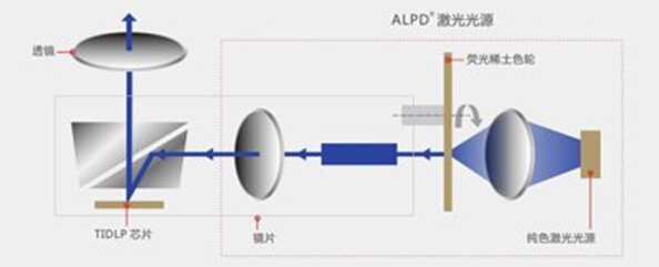 然而,ALPD激光光源技術的出現(xiàn),將打破這一行業(yè)格局。ALPD 是“Advanced Laser Phosphor Display” 的縮寫,即為先進的激光熒光顯示技術。ALPD 用基于GaN藍光激光激發(fā)運動的熒光材料來產(chǎn)生一種或多種基色用于圖像顯示,是高亮度圖像顯示的最關鍵核心技術。目前這項技術的核心專利掌握在深圳市光峰光電技術有限公司手中,該公司是全球激光顯示技術領跑者。