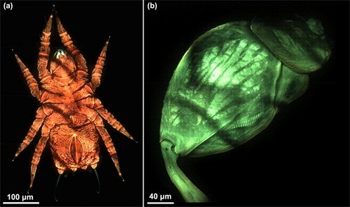 螨蟲(a)和跳甲跳器(b)的彩色三維圖像