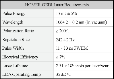 表1 HOMER GEDI激光器基本性能要求