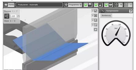 整個加工過程中,操作人員還能通過ByVision Bending控制系統(tǒng)掌握并了解Crowning 4撓度補(bǔ)償系統(tǒng)的當(dāng)前工作狀態(tài)。