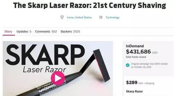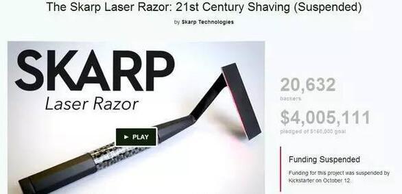 最近一款名叫Skarp的激光剃須刀,在kickstarter上眾籌,超過了20000人的支持,籌集了400多萬美元,居然被叫停了!
