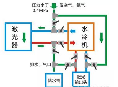 注意:必須對(duì)激光器、激光輸出頭、加工頭及水冷機(jī)內(nèi)所有冷卻水排放干凈才能有效保護(hù)整套水冷管路和相關(guān)器件!