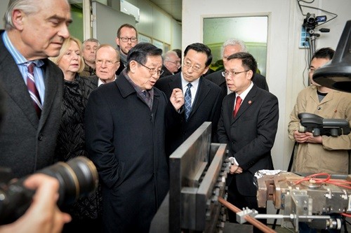 萬(wàn)鋼在致辭中充分肯定了上海交大及激光實(shí)驗(yàn)室近年來(lái)所取得的成績(jī),并對(duì)實(shí)驗(yàn)室迎來(lái)十周年表示熱烈祝賀。他結(jié)合自己的留德經(jīng)歷,講述了中國(guó)學(xué)者在德國(guó)求學(xué)的感受。他談到中德雙方高校從項(xiàng)目合作發(fā)展到機(jī)構(gòu)合作,雙方在合作過(guò)程中建立了緊密的合作關(guān)系,這種產(chǎn)學(xué)研的合作模式,可以直接把研發(fā)成果應(yīng)用到實(shí)踐中去。不僅在學(xué)科領(lǐng)域研究開(kāi)發(fā)以及探索應(yīng)用,同時(shí)也在探索著一種新的國(guó)際合作模式。中方的產(chǎn)學(xué)研合作與德方的產(chǎn)學(xué)研合作結(jié)合,讓合作領(lǐng)域更寬,更久遠(yuǎn),讓雙方的創(chuàng)造性集中在一起,創(chuàng)造更大的成果。中國(guó)與德國(guó)的科技合作將進(jìn)一步深化,特別是產(chǎn)學(xué)研方面的合作,要進(jìn)一步提高雙方合作的能力。激光實(shí)驗(yàn)室的“2+2”模式,是一個(gè)很好的機(jī)構(gòu)性合作、持續(xù)性和創(chuàng)造性能力建設(shè)項(xiàng)目。目前,國(guó)家正在制定“十三五”的科技創(chuàng)新戰(zhàn)略,科技創(chuàng)新也將成為未來(lái)五大理念之首。德國(guó)制造創(chuàng)造了德國(guó)的品牌,設(shè)定了工業(yè)4.0的目標(biāo);中國(guó)制造也在奮起直追,正在走向世界,制定了中國(guó)制造2025。萬(wàn)鋼表示,中德雙方科技部門(mén)的合作走過(guò)了幾十年,保持了良好的合作關(guān)系,未來(lái),雙方也將共同來(lái)支持高校和院所與企業(yè)的合作,為中德友誼的深化做出更大的貢獻(xiàn)。