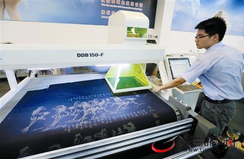 以東莞較為發(fā)達(dá)的服裝產(chǎn)業(yè)為例。據(jù)介紹,傳統(tǒng)的牛仔人工洗水工藝,需要大量的水和化學(xué)藥品,這對水資源、從業(yè)者身體健康傷害巨大,且各道工序加起來,至少需要1小時。而一臺激光機(jī)器,對著一件牛仔褲掃一掃,有水洗圖案效果的牛仔褲便出來了,前后僅需20秒鐘。而且1個工人便可操作4臺機(jī)器,約40人就可以完成傳統(tǒng)牛仔褲洗水工廠200名工人80%的工藝量。
