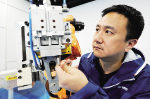有的制造廠家把工業(yè)機(jī)器人買回家當(dāng)成“門衛(wèi)”,把激光工作站買回家當(dāng)成了“擺設(shè)”,主要原因就是不能解決多種設(shè)備集成到一起的問(wèn)題。針對(duì)這一現(xiàn)象,湯旭東團(tuán)隊(duì)開(kāi)發(fā)出了國(guó)內(nèi)領(lǐng)先的基于大功率激光加工的混合工藝復(fù)雜制造系統(tǒng)仿真技術(shù),把隨行壓輪、滾頭、焊鉗、抓手、涂膠機(jī)等自動(dòng)化設(shè)備有機(jī)整合在一起,讓機(jī)器人、激光工作站產(chǎn)生“1+1>2”的效應(yīng)。