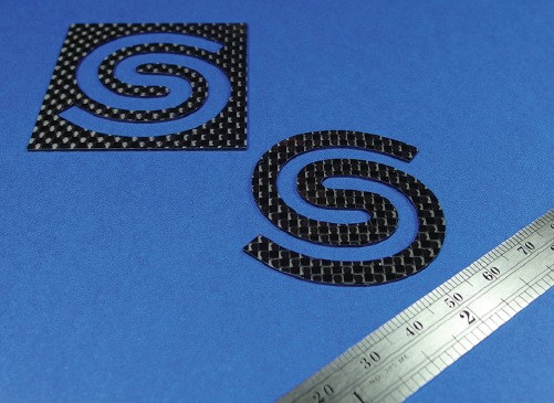 圖1:在~1mm厚的碳纖維增強復(fù)合材料板材上切割出Spectra-Physics的標志