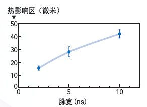 圖2:脈沖持續(xù)時間對熱影響區(qū)的影響