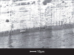 圖3:在激光織構(gòu)中波紋度的細(xì)微變化,較低的部分是通過(guò)激光織構(gòu)實(shí)現(xiàn)的(見(jiàn)圖10:在高倍放大鏡下觀察到的織構(gòu)區(qū)域)