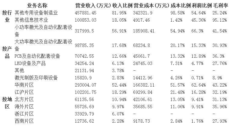 其中,大功率激光切割機(jī)實(shí)現(xiàn)銷售收入85,378萬元,同比增長5.51%;大功率激光焊接機(jī)實(shí)現(xiàn)銷售收入7,570萬元,同比增長187%。