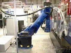 ?。?)激光焊接機器人基于機器人激光加工系統(tǒng)應(yīng)用于汽車制造業(yè)。汽車車門、底板激光遠程掃描焊接成套設(shè)備。采用高功率光纖激光器或者碟片激光器, 研究機器人6軸與振鏡3軸的聯(lián)動控制系統(tǒng),汽車底板激光遠程掃描焊接生產(chǎn)線與汽車車門激光遠程掃描生產(chǎn)線工藝規(guī)劃,激光遠程掃描焊接工藝與質(zhì)量檢測技術(shù) 等,滿足三維車身焊點的高效定位,車門激光焊接長度≥4000mm,底板激光焊接長度≥4000mm,激光焊接速度≥30m/min,用于汽車工業(yè)具體操 作如圖5所示。