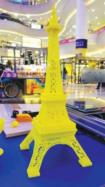 在劉虎的工作室里,各種標(biāo)準(zhǔn)和體量的儀器一字?jǐn)[開(kāi)。其中,一臺(tái)3D打印機(jī)正揮動(dòng)著機(jī)械手臂,“勾勒”出一座30厘米高的埃菲爾鐵塔,一個(gè)“智腦”根據(jù)各種線條控制手臂速度,并以每層0.3毫米的厚度,層層疊加,實(shí)現(xiàn)3D立體效果。