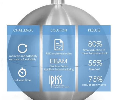 洛克希德·馬丁公司董事長、總裁兼CEO Marilyn A. Hewson最近在航天工業(yè)協(xié)會(AIA)供應商管理委員會夏季會議上談到了這一成功合作。她說:“當我們的太空系統(tǒng)商務部門想要尋找方法,在保持衛(wèi)星部件質量的基礎上降低成本時,一家名為Sciaky的公司給我們提供了一種解決方案。我們共同開發(fā)可以通過電子束增材制造工藝進行3D打印的鈦推進劑貯箱。”