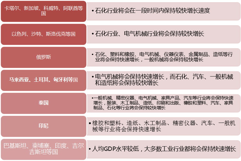 在東南亞,重視東南亞地區(qū)的產(chǎn)能合作新市場,抓住其產(chǎn)業(yè)深化重要機(jī)遇,推動裝備制造業(yè)滲透式輸出;在中亞,重視中亞地區(qū)基礎(chǔ)設(shè)施開發(fā),加大金融對裝備制造企業(yè)走出去的支持,打造裝備制造業(yè)產(chǎn)能輸出樣板工程;在中東及北非,深化與中東及北非地區(qū)能源資源勘探開發(fā)合作,依托西部工業(yè)能力,構(gòu)建能源勘探、采掘、服務(wù)價(jià)值鏈條;在中東歐,注重與優(yōu)質(zhì)資源的深度合作,共建研究院和培訓(xùn)機(jī)構(gòu),推動中歐中高端裝備產(chǎn)業(yè)合作創(chuàng)新,建設(shè)中高端裝備進(jìn)軍西歐的橋頭堡。