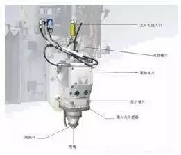 切割頭底部為噴嘴,在切割過程中,噴嘴與工件之間的距離(噴嘴高度)約0.5~1.5mm,不妨看作是一個(gè)固定值,即噴嘴高度不變,所以不能通過升降切割頭來調(diào)焦(否則無法完成切割加工)。