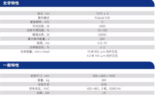 YLS-2300/23000-QCW是IPG Photonics近期推出的新產(chǎn)品。該機(jī)型可提供高達(dá)23 kW 的峰值功率,脈寬0.2-10 ms,最大脈沖能量230 J,調(diào)制頻率高達(dá)2 kHz,特別適合航空業(yè)的切割及鉆孔應(yīng)用,可滿足沖擊鉆孔、套孔及精細(xì)切割等應(yīng)用需求。