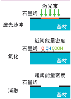 圖1:在不同條件下,不同激光脈沖能量對于石墨烯的局部消融或氧化示意圖。