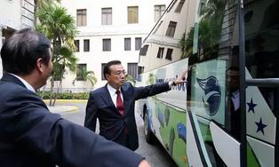 中新社哈瓦那9月25日電 (記者 郭金超)當?shù)貢r間9月25日下午,中國國務院總理李克強在古巴首都哈瓦那體驗中國出口的宇通客車,考察中國裝備“走出去”情況。