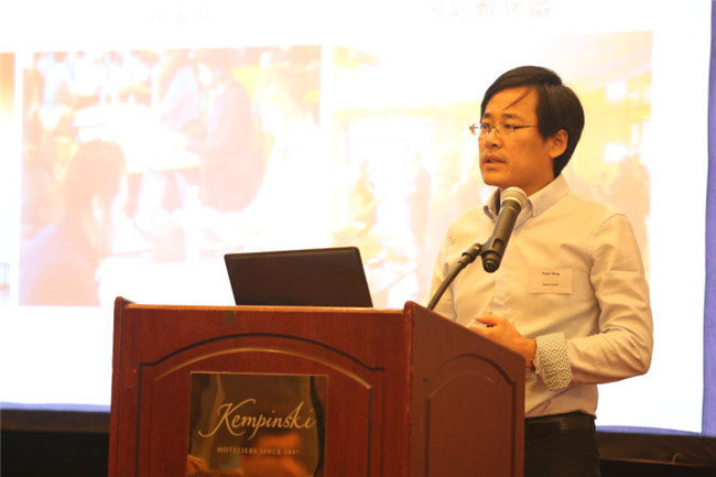 來(lái)特激光副總經(jīng)理Donatas Podenas為來(lái)賓講解公司的發(fā)展歷程與未來(lái)的計(jì)劃