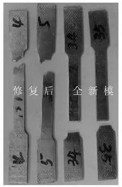 圖2 拉伸試驗后的修復(fù)模具與全新模具試樣狀態(tài)圖