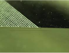 出乎意料的是,與用于銅質(zhì)材料幾乎相同的參數(shù)也可應(yīng)用于無涂層硼硅酸鹽玻璃上下層表面的打標。這進一步支持了有關(guān)非線性吸收是由于高峰值功率光纖激光器的影響而產(chǎn)生的假說。檢查劃片區(qū),可以看到“龜裂”情況非常有限,裂紋<10μm,表面粗糙度<5μmRa。圖6顯示了低倍鏡下的劃線及非開裂 狀況。
