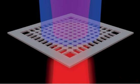 在這項(xiàng)工作中的連續(xù)的束縛態(tài)激光器是由一個(gè)薄的銦、鎵、砷、磷半導(dǎo)體膜制成的。膜結(jié)構(gòu)為懸浮在空中的圓柱的納米陣列。氣缸由支持橋梁網(wǎng)絡(luò)相互連接,提供了設(shè)備的機(jī)械穩(wěn)定性。