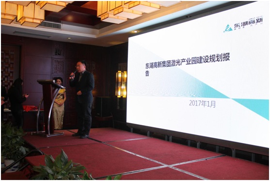 武漢聯(lián)投佩爾置業(yè)有限公司總經(jīng)理孫德剛進(jìn)行東湖高新集團(tuán)激光產(chǎn)業(yè)園項目發(fā)布