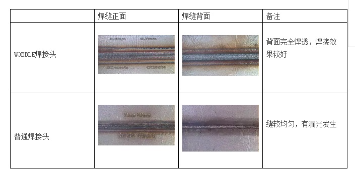 我們通過(guò)一組實(shí)驗(yàn)進(jìn)行對(duì)比說(shuō)明,通過(guò)WOBLLE模塊焊接頭和普通焊接頭實(shí)驗(yàn)對(duì)比