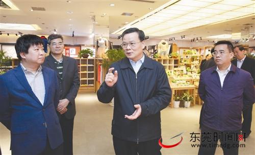 昨日,呂業(yè)升一行到道滘鎮(zhèn)調(diào)研。圖為考察搜于特集團(tuán)(記者 鄭琳東 攝)23日上午,東莞市委書記、市人大常委會(huì)主任呂業(yè)升率隊(duì)到道