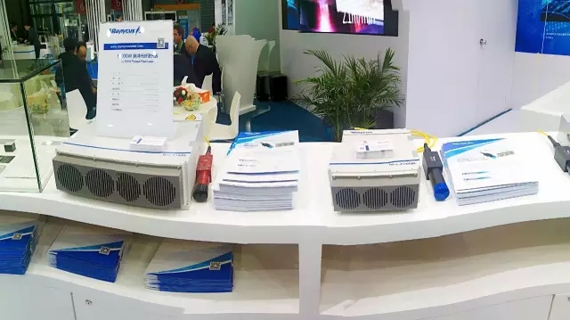 (圖為:展會現(xiàn)場展示的銳科高功率光纖激光器)