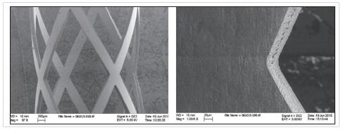 圖八的電子顯微鏡照片是以超快激光切割的鎳鈦合金支架。從圖右的局部照片可以看到,沒有任何熔渣或毛刺。