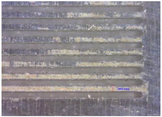 使用特定配置的切割頭,切割0.5mm板材,能夠獲得的最小切縫條紋之間的距離為0.1mm。