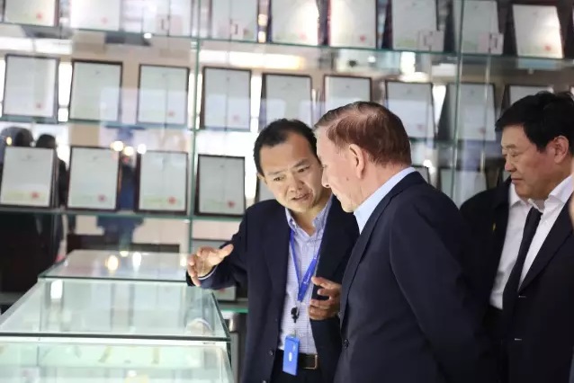 2017413日下午,全國人大常委會副委員長艾力更·依明巴海率領全國人大華僑委座談會代表蒞臨炬光科技指導工作。艾力更·依明巴海副委員長一行在炬光科技董事長兼總經(jīng)理劉興勝博士、副總經(jīng)理田野、副總經(jīng)理卜遠明等陪同下,依次參觀了公司產(chǎn)品展廳、激光應用實驗室、研發(fā)生產(chǎn)車間。