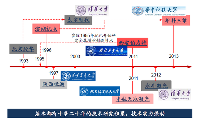 以黃衛(wèi)東教授及其團(tuán)隊(duì)為代表的西北工業(yè)大學(xué)激光制造工程中心,在金屬3D打印領(lǐng)域極具代表性。曾打印3米高鈦合金激光立體成形C919飛機(jī)中央翼緣條,為航空航天、軍工中的金屬3D打印提供完善的技術(shù)支持和解決方案,國(guó)產(chǎn)大飛機(jī)C919上就有西工大所提供的3D打印零部件。西安伯力特在金屬3D打印機(jī)的研發(fā)生產(chǎn)及加工服務(wù)方面是國(guó)內(nèi)的龍頭企業(yè)。