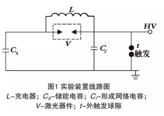 激光器主體為布魯林放電裝置,這是一種業(yè)余工作者也能制作的快放電設(shè)施,以前常用于氮激光,其特點(diǎn)是一對(duì)長(zhǎng)約0.5 m的銅制楔形電極,刀口間距約為2 cm,儲(chǔ)能電容和形成電容均為分布參量平板電容,球隙作放電開關(guān)。