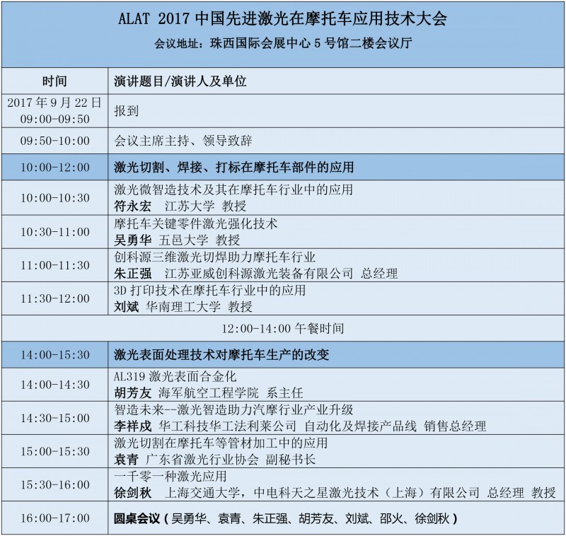 9月22日,由五邑大學(xué)、廣東省激光行業(yè)協(xié)會聯(lián)合主辦的ALAT 2017中國先進(jìn)激光在摩托車應(yīng)用技術(shù)大會將在廣東珠西國際會展中心(江門)舉辦。