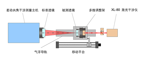 球面鏡(透鏡表面是球面的一部分)被廣泛應用于工業(yè)、科研等范疇,特別是半導體制程中的光刻機、航天攝像系統(tǒng)、望遠鏡等對內部光學組件有極嚴格要求的應用,每個組件的微小加工誤差對系統(tǒng)的成像質量都有著極大的影響。在北理工成功開發(fā)激光差動共焦干涉組件測量儀之前,市場上沒有能同時進行相關參數測量的儀器。北京理工大學光電學院教授趙維謙教授在解釋測量儀器的結構和工作原理時說:“我們應客戶的要求來定制不同規(guī)格配置的測量儀器,基本機構主要由差動共焦干涉測量主機( 包含差動共焦干涉光路)、標準透鏡、氣浮導軌、多維調整架、機電移動平臺和雷尼紹XL-80激光干涉儀組成。差動共焦干涉測量主機向被測鏡射出測量光束并聚于標準透鏡焦點處,被測透鏡通過多維調整架架設在氣浮導軌上,由機電移動平臺帶動調整架與被測透鏡沿光軸方向移動。當測量光束匯聚點與被測透鏡前表面頂點或后表面頂點重合時,光束由被測鏡表面反射,沿路返回進行數據分析,同時測長激光干涉儀 (XL-80) 實時采集被測透鏡的位置坐標數據。”
