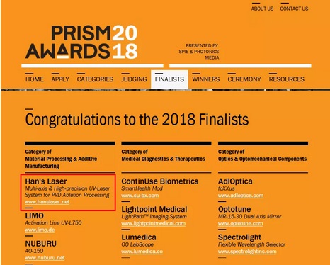 大族激光入圍全球光電子行業(yè)最高榮譽——棱鏡獎