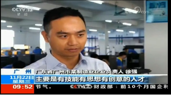 ”為解決技師學院學生就業(yè)問題,提高就業(yè)收入,也為我司帶來高新技術(shù)人才;2015年我司已與廣東省機械技師學院創(chuàng)建了校企合作班“,創(chuàng)可激光負責人徐強在接受央視采訪時提到。“我們現(xiàn)在所需要的人才,主要是有技能有思想有創(chuàng)意的人才,解決了人才問題,其他都是小事”。