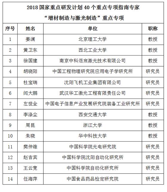 9月份至今,國家重點(diǎn)研發(fā)計(jì)劃“增材制造與激光制造”已經(jīng)有多個項(xiàng)目啟動了: