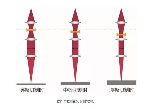 解決光束傳導(dǎo)技術(shù)難題對實(shí)現(xiàn)萬瓦級激光裝備也極其重要。由于受到光學(xué)加工能力限制,很難加工出整形效果好、衍射極限高的光學(xué)元器件,一定程度上制約了大功率激光傳輸技術(shù)的發(fā)展,如何提升光學(xué)端面拋光技術(shù)、提高衍射效率高的光學(xué)器件制備能力是未來超高功率激光發(fā)展和應(yīng)用的挑戰(zhàn)。萬瓦級功率激光從100μm的光纖芯徑內(nèi)射出,其功率密度之大可想而知,一般而言,激光傳導(dǎo)經(jīng)過的路徑由光纖端面鏡、QBH或QD接口、準(zhǔn)直擴(kuò)束鏡組、變焦系統(tǒng)、聚焦鏡和下保護(hù)鏡等組成,鑒于超高的功率密度,對所有上述路徑上的光學(xué)鏡片提出嚴(yán)苛的潔凈度和溫升要求,整個(gè)光路必須嚴(yán)格密閉,不得與外界有介質(zhì)交換,而且須在潔凈空間內(nèi)安裝和清潔光學(xué)器件,另外各環(huán)節(jié)冷卻回路的壓力、流量、水流進(jìn)出順序及水溫同樣重要,確保切割加工過程中溫度保持相對恒定。通常來說,激光切割必須先有起刀孔,尤其是切割厚板材料時(shí),穿孔質(zhì)量十分重要,優(yōu)良的穿孔是保證光束和氣流穩(wěn)定的基礎(chǔ),對萬瓦級激光切割而言,變焦穿孔技術(shù)是通過伺服電機(jī)控制擴(kuò)束鏡組與聚焦鏡的相對距離,實(shí)現(xiàn)聚焦光斑正負(fù)離焦量的變化,切割不銹鋼、鋁及鋁合金、黃銅及紫銅需要負(fù)離焦,厚度越大,負(fù)離焦越深(圖1)。采用伺服控制“雙凸—雙凹—雙凸”ZOOM鏡組,實(shí)現(xiàn)分級或無級調(diào)焦(圖2),高速動態(tài)變焦穿孔,實(shí)現(xiàn)割縫斷面無斜度切割。采用光束整形技術(shù)、模式自動變換控制技術(shù)、能量密度微積分技術(shù),實(shí)現(xiàn)大厚度不銹鋼及高反射材料的“亮面切割”。