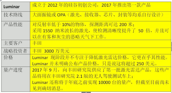 如相控陣激光雷達(dá)公司Luminar拿到了豐田的投資,后者也是它的第一個(gè)客戶;