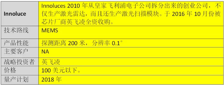 首先我們注意到,很多激光雷達(dá)的公司的投資方中,都有芯片制造商的影子。比如,三星投資了Quanergy,英特爾投資了Aeye,而英飛凌更是全資收購了Innoluces。