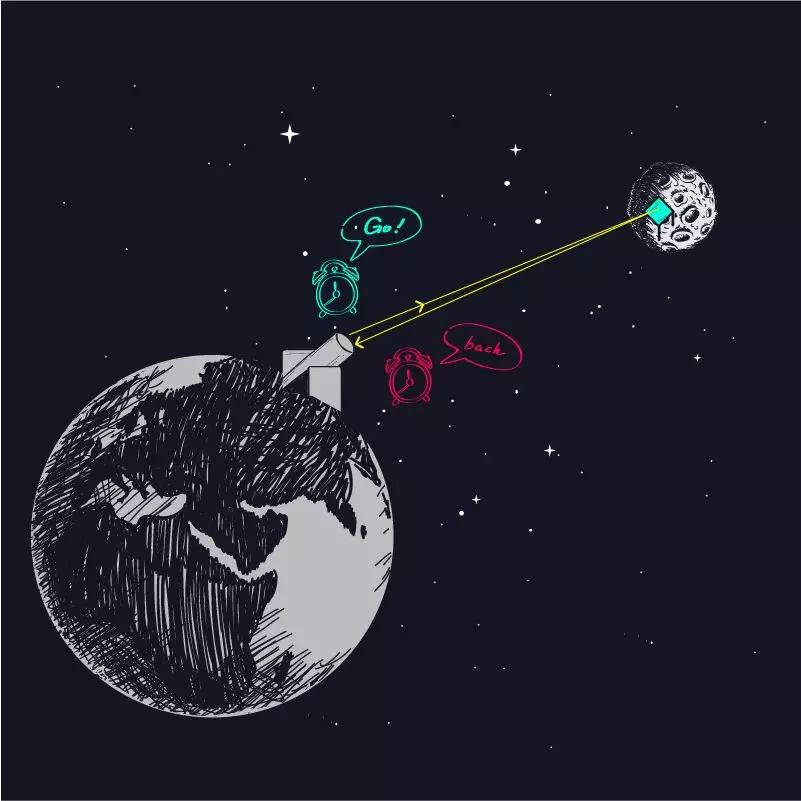 透過地球大氣層的包圍,一群群光子前赴后繼的從地球奔向月球,途中有天體引力場的干擾,有宇宙時空中引力波的影響,有自身能量的波動和損耗。千辛萬苦到達月面反射鏡后,數(shù)以億計的光子兄弟此時已損耗大半?;爻虝r除了遇到之前的同樣的困苦,要想準(zhǔn)確鉆回出發(fā)時家里的“被窩”,還需克服大氣擾流襲擾,原子鐘一絲不茍的計時為光子回家打開了大門,而這一切都發(fā)生在短短的2.5秒之中。而完成10次這樣地月之旅后,能安然無恙回家的光子最多只有1個。