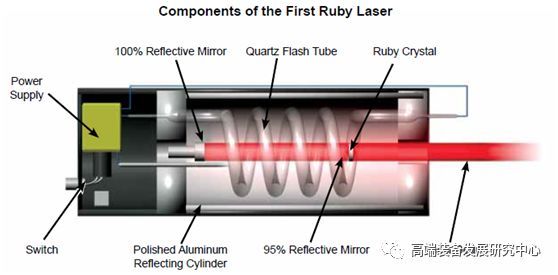 (第一臺紅寶石激光器由研究物理學家Theodore H. Maiman于1960年研發(fā))