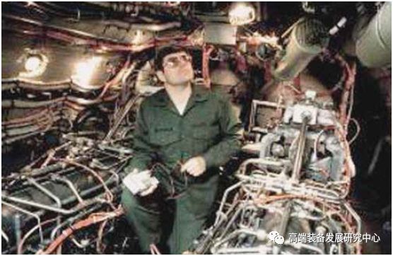 (工程師在NKC-135機載激光實驗室安裝后檢查氣體動力激光器)