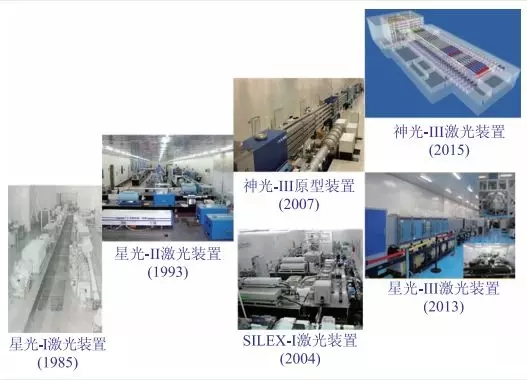 盡管發(fā)展過程中面臨巨大困難,但在老一輩科學(xué)家的指引下,上海光機所和中物院兩支研究團隊精誠協(xié)作,先后為我國研制了多臺固體激光裝置,主要包含星光系列和神光系列激光裝置。兩類裝置在 ICF研究中定位不同,因而在國內(nèi)形成了配套互補的 ICF 研究格局,促進了中國 ICF研究的健康發(fā)展。星光系列激光裝置主要用于基礎(chǔ)實驗,在開展分解實驗和物理診斷設(shè)備考核標定的同時,發(fā)展了多項激光新技術(shù)的預(yù)先研究,如三倍頻技術(shù)等;神光系列激光裝置主要用于較綜合的實驗,以上海光機所為主建設(shè)的神光-I和神光-II裝置對我國 ICF的技術(shù)發(fā)展起到了重要的推動作用。