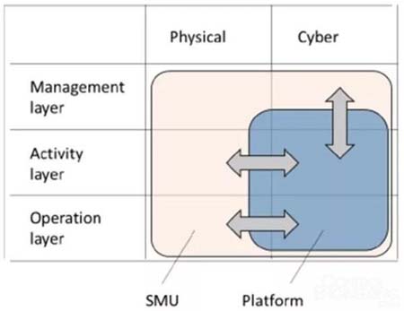 作為制造業(yè)的基礎(chǔ)單位——智能制造單元(Smart Manufacturing Unit,SMU),是2016年版本的重要成果。而新版框架IVRA―Next則在SMU的基礎(chǔ)上,加進了具體表現(xiàn)SMU活動的手法。西岡理事長稱,“不同于以前的參考模型,這次不再僅僅局限于體現(xiàn)基本概念了”。換言之,日本智能制造的架構(gòu),要進行實戰(zhàn)指南了。因此,新版架構(gòu)中增加了圍繞SMU進行建模的方式,這是整個三層架構(gòu)中業(yè)務(wù)層,最為重要的內(nèi)容。另外,作為SMU間的信息協(xié)同手段,還論述了區(qū)塊鏈(Blockchain)技術(shù)。