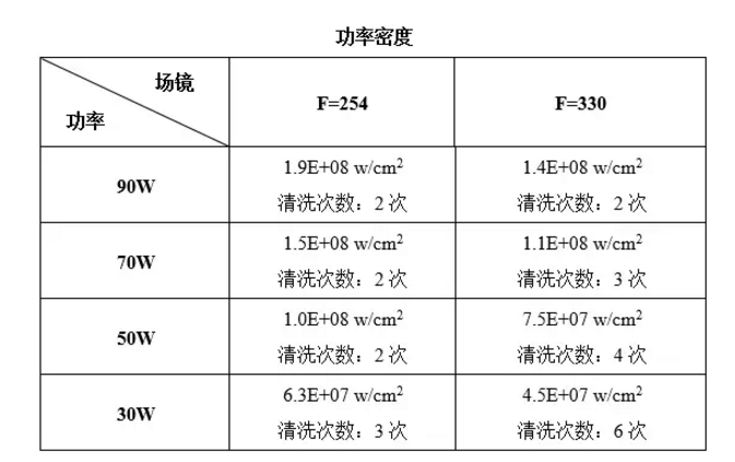 (2)該測試表明,功率密度為4.5E+07 w/cm2,六次清洗不能使銹層清洗干凈,繼續(xù)清洗,對于該厚度銹層,可粗略認(rèn)為該功率密度附近為銹層清洗閥值下限。