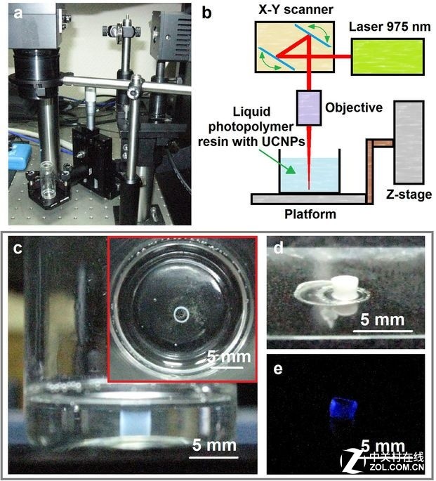 (a)在NIR照射下含有UCNPs的PCC中制造3D聚合物結(jié)構(gòu)的實(shí)驗(yàn)裝置和