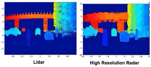 激光雷達(dá)(LiDAR)成像(左) vs. 高分辨率雷達(dá)(RADAR)成像(右)